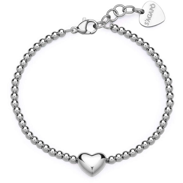 Bracciale donna in acciaio 316L con sfere e centrale a cuore. Collezione STELLAR.
