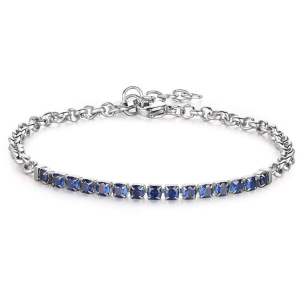 Bracciale tennis uomo in acciaio 316L con cubic zirconia blu, regolabile 18–21 cm. TRICKY.