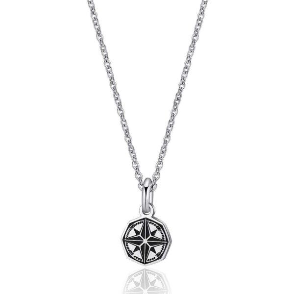 Collana uomo in acciaio 316L con pendente rosa dei venti e smalto nero. Collezione CHARISMA.