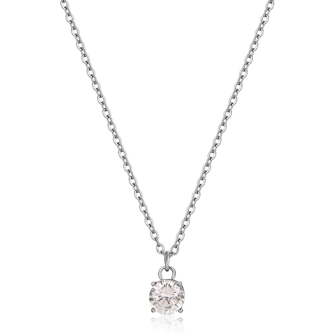 Girocollo in acciaio 316L con pendente cubic zirconia light sapphire punto luce. Collezione DAZZLY.