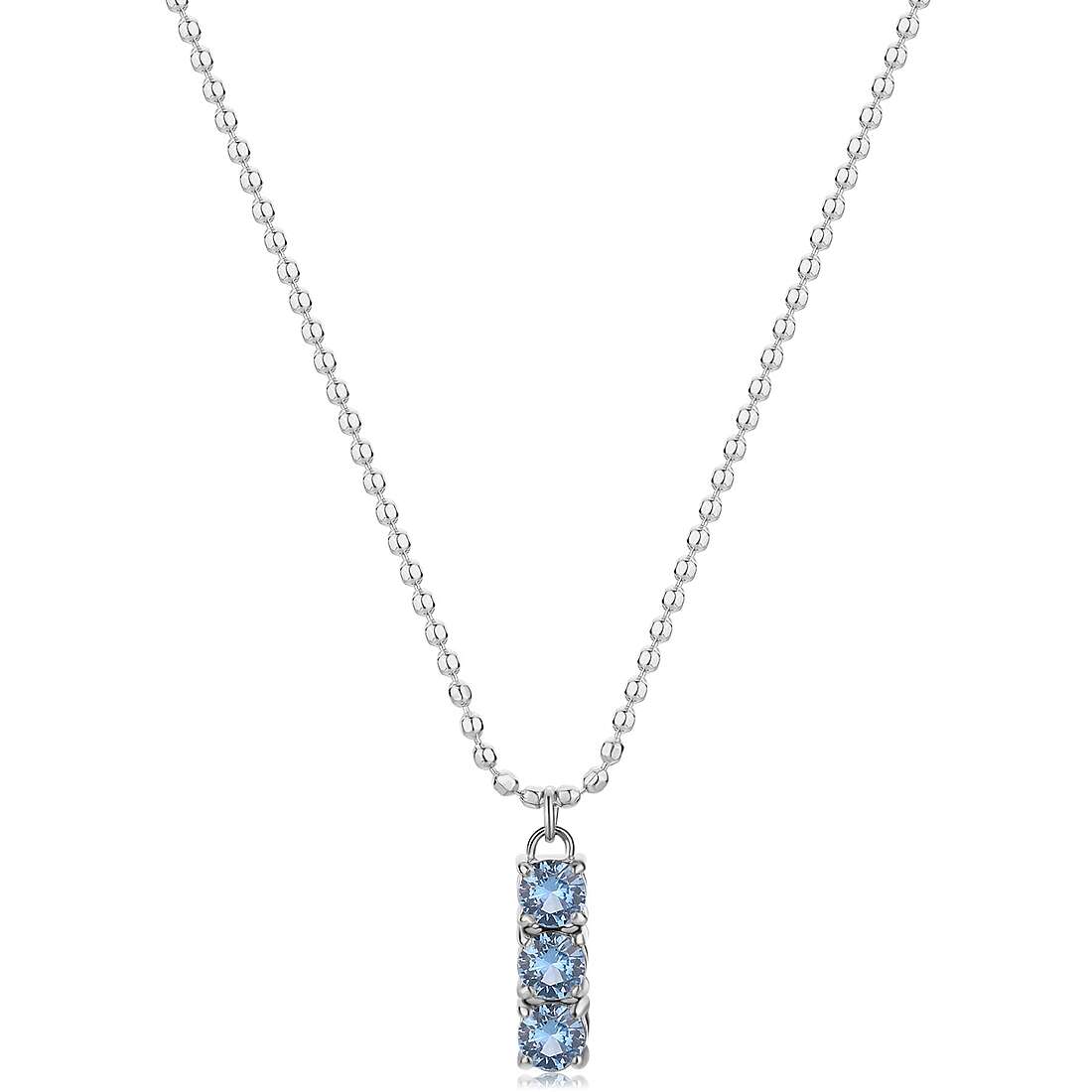 Girocollo sfere in acciaio 316L con pendente cubic zirconia light sapphire. Collezione DAZZLY.