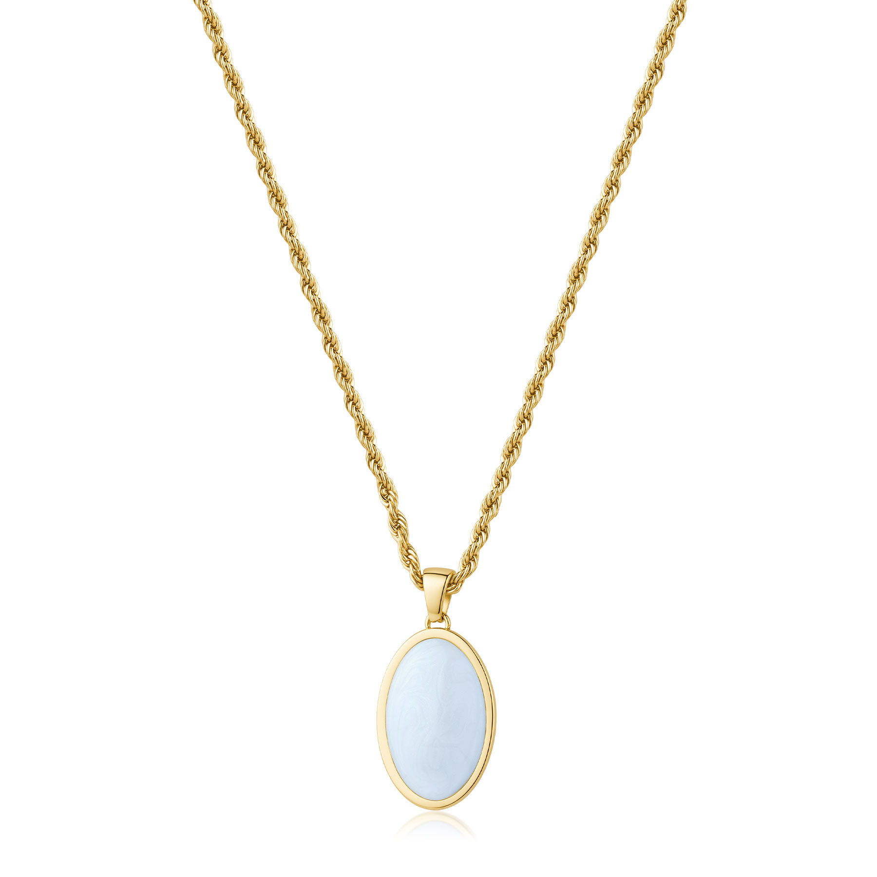 Collana Donna madame s’agapo sdm02 girocollo in accaio 316L e finitura pdv color oro con pendente ovale e smalto bianco perla