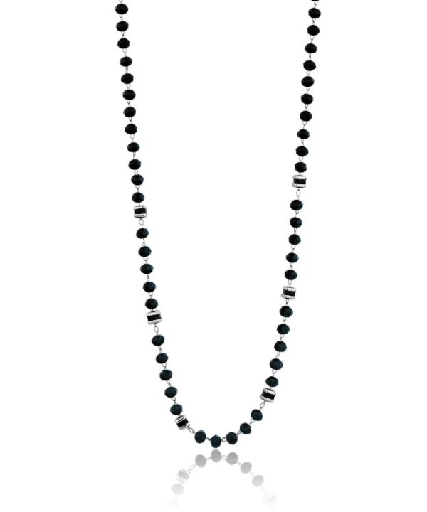 Collana uomo in acciaio 316L, finitura rutenio con sfere in vetro blu. Lunghezza 49 cm.
