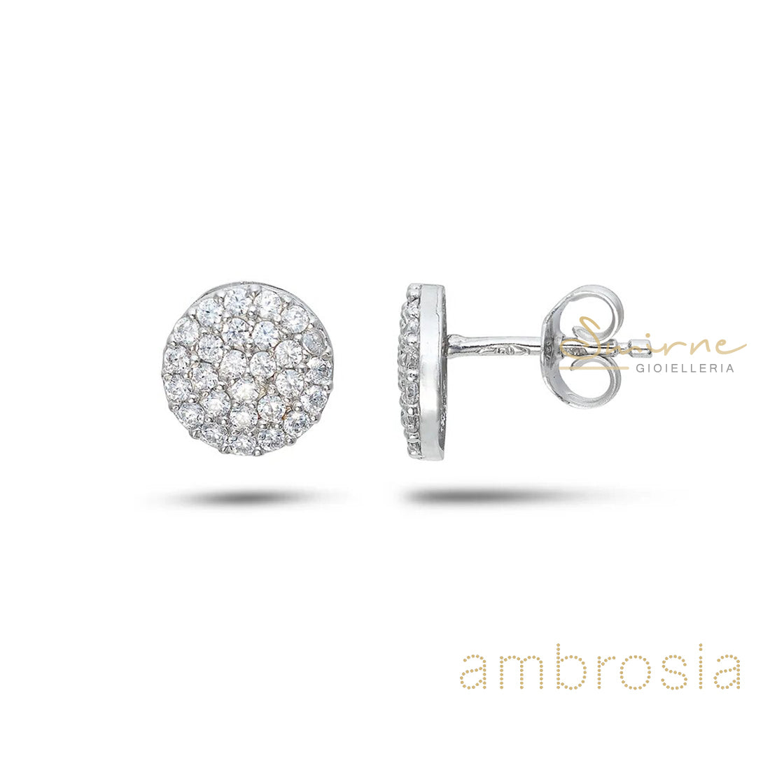 Orecchini donna Ambrosia in oro 750 (18kt) con zirconi in montatura elegante. Collezione Dea di Luce. Lavorazione italiana di alta qualità in oro 18kt. Cofanetto regalo blu con finiture oro incluso. Made in Italy.