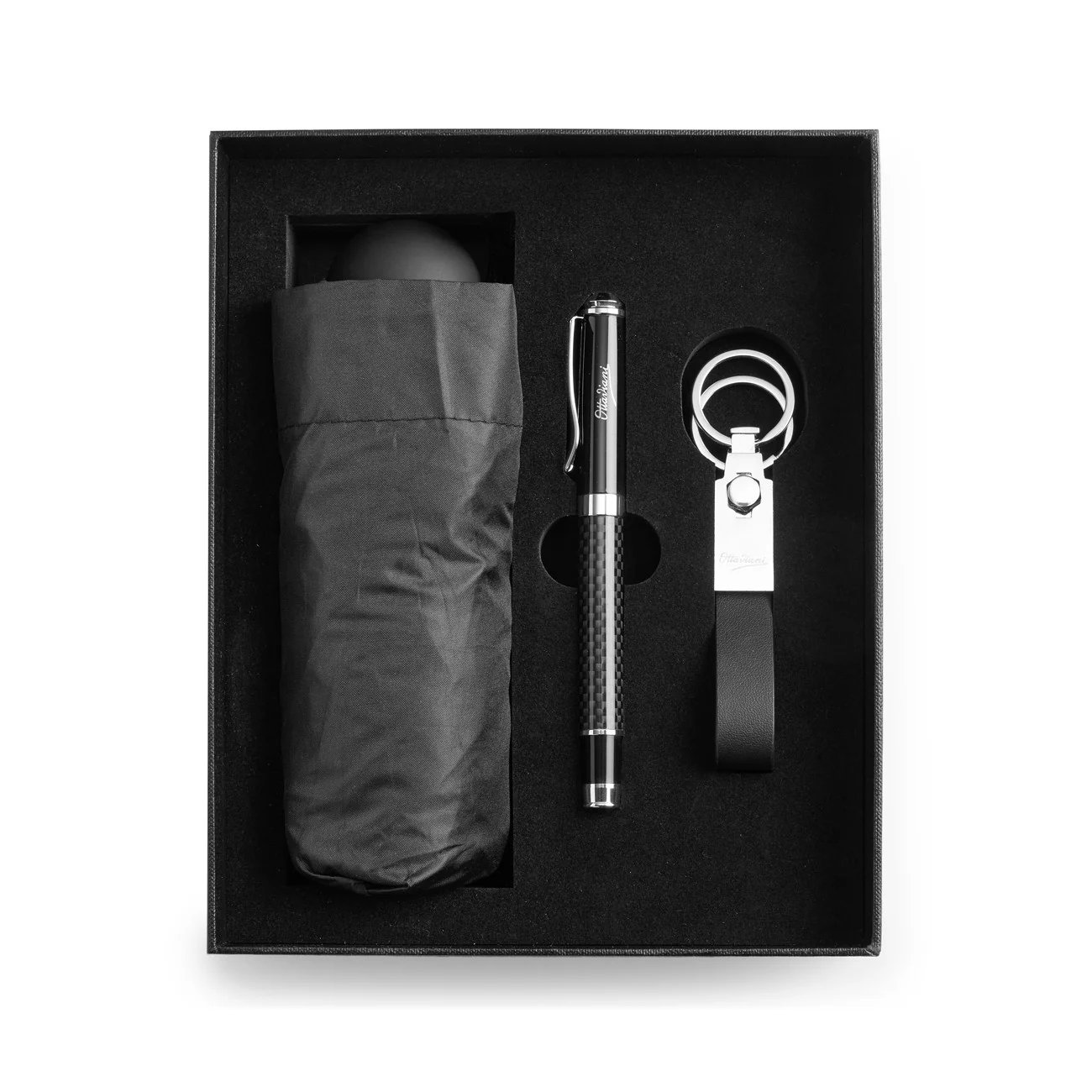 Presentiamo il set da uomo di OTTAVIANI, un perfetto connubio di eleganza e funzionalità. Questo set, identificato con il codice 87661, include un ombrello, un portachiavi e una penna, tutti realizzati con materiali di alta qualità per garantire durata e stile.