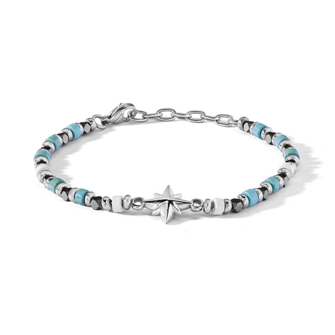 Pensato per l’uomo che ama accessori curati, bracciale con pietre verdi e charm centrale. completa l’outfit con un accento sobrio e ricercato. Un tocco maschile essenziale e curato. (Modello ubr1263).