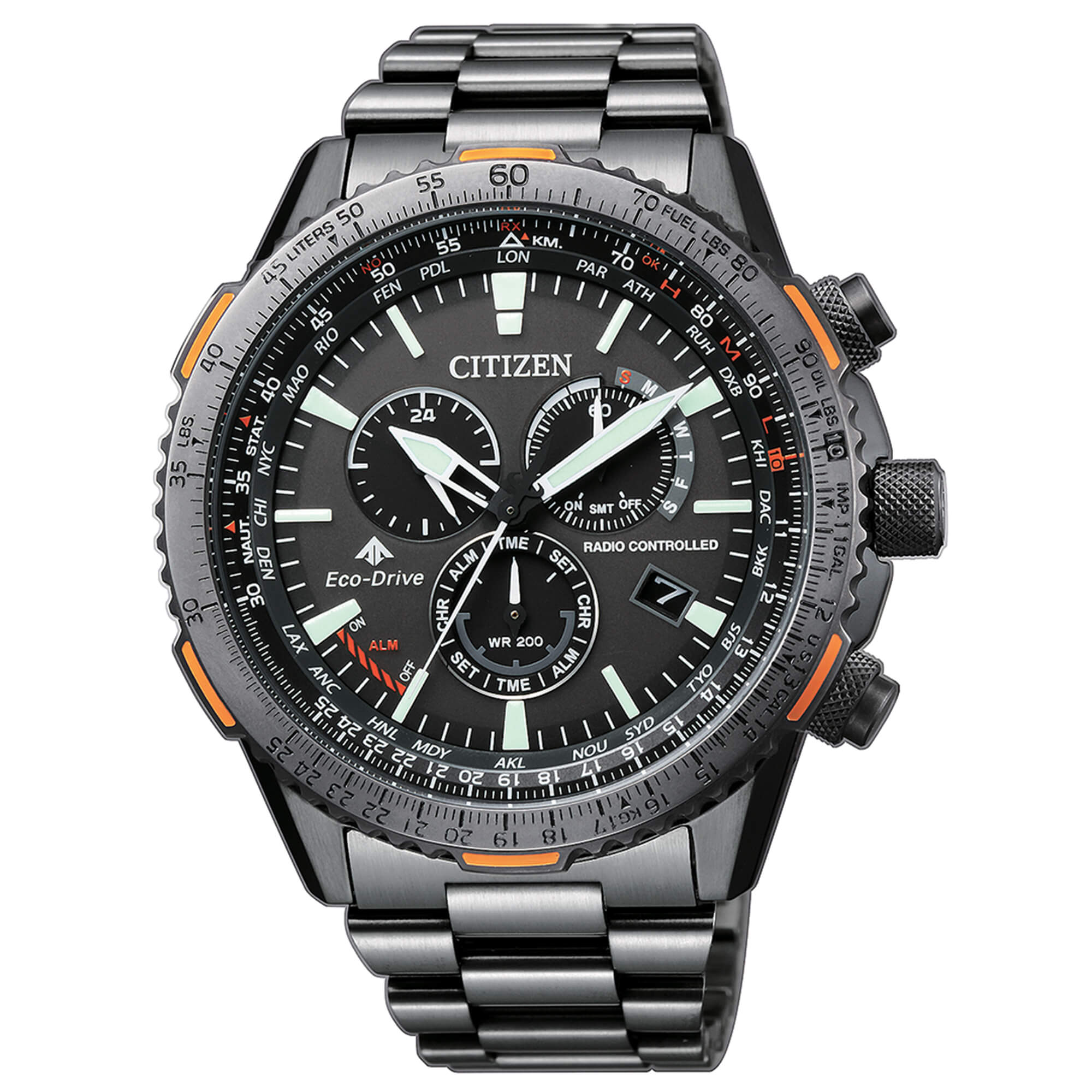 Orologio Citizen radiocontrollato Eco-Drive con cronografo e regolazione automatica dell’ora, pensato per massima precisione.